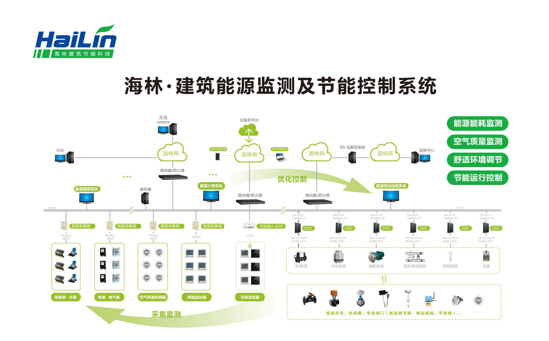 海林依靠自身強(qiáng)大的自控技術(shù),對(duì)建筑內(nèi)的空調(diào)、采暖、新風(fēng)、溫度、濕度、空氣質(zhì)量、熱水以及能耗實(shí)施監(jiān)視、控制、分析和管理,實(shí)現(xiàn)建筑的節(jié)能、智能、舒適、健康和安全。