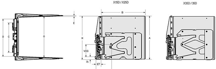 Capacity 承載能力(kg) | Catalog Order NO 型號(hào) | Mounting Class 安裝等級(jí) | Opening Range張臂范圍(mm) | Arm Height臂高A(mm) | Arm Length臂長B(mm) | Vertcial Center Of Gravity垂直重心VCG(mm) | Load Center載荷中心(mm) | Overall Width總寬D(mm) | Hook Spread上鉤外側(cè)間距(mm) | Weight 自重(kg) | Effective 失載距ET(mm) | Horizontal Center of Gravity 水平重心CGH(mm) |